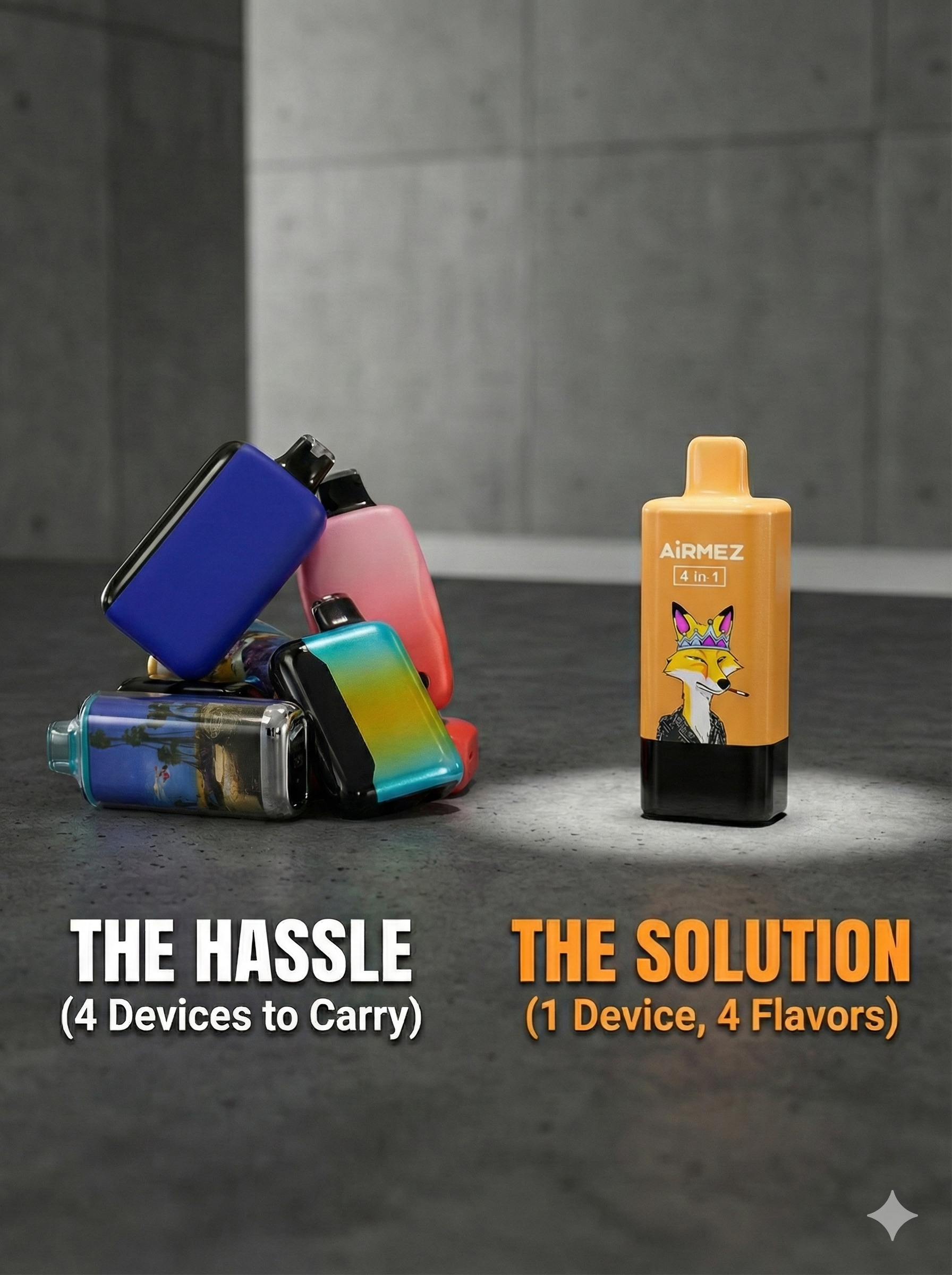 If you're tired of the juggling act and want a truly convenient, high-capacity vape that offers real flavor variety, the Airmez Fox 4-in-1 is the device you've been waiting for. It's practical, innovative, and built for the real-world needs of vapers.