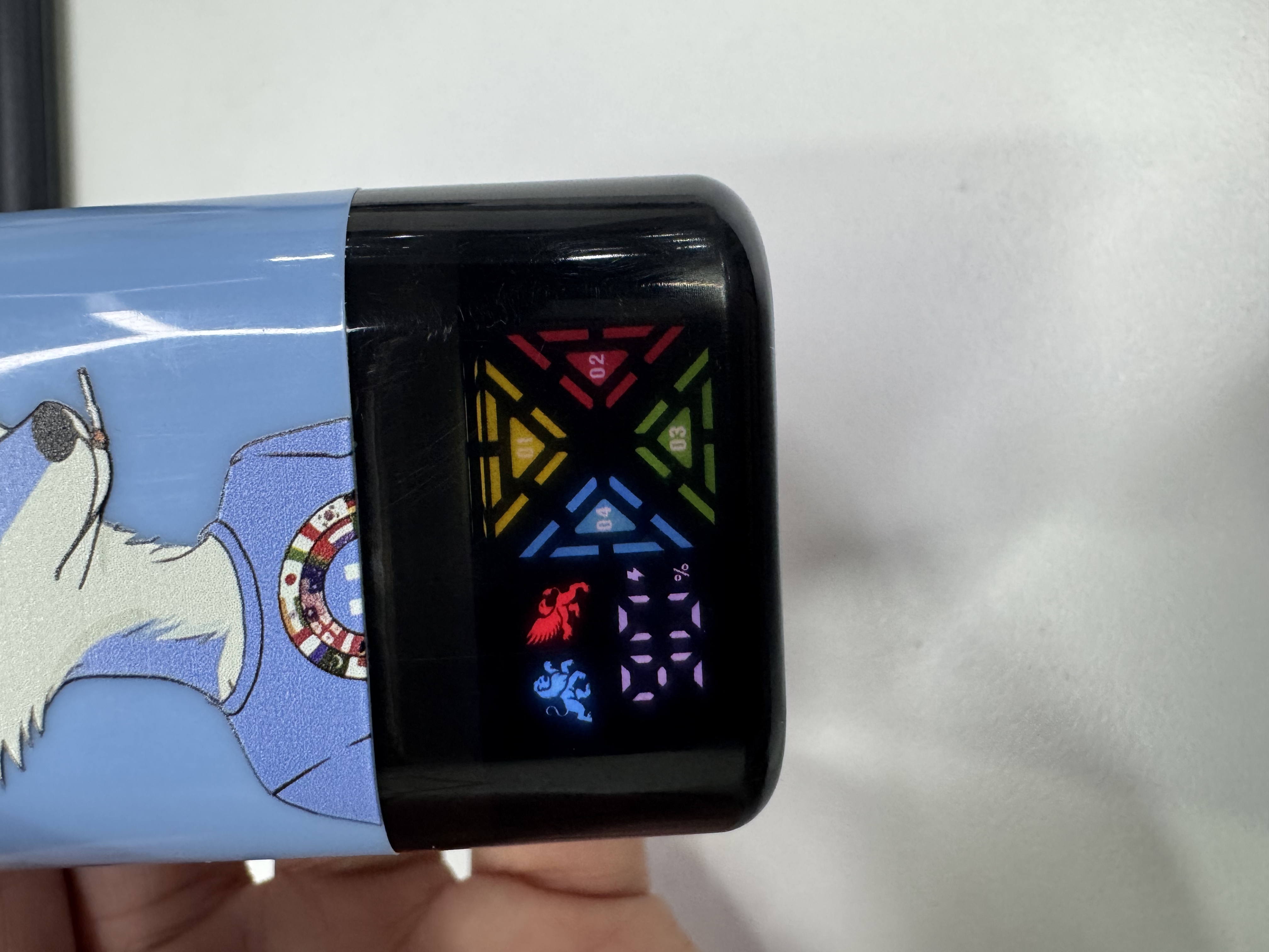 Thankfully, Airmez added a proper screen on this thing. Finally. I can actually see my battery percentage instead of guessing when it's going to die on me. It displays which flavor tank (1-4) is currently active, so you always know what you're vaping. More importantly, it gives you real-time readouts of both your remaining battery life and e-liquid levels. No more guessing, no more surprises.